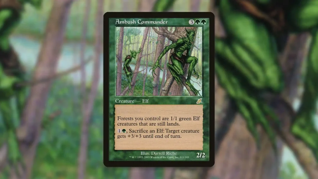 The downside to cards like Ambush Commander is that they leave your lands vulnerable to board wipes, but there are workarounds for this issue. Pairing this $0.44 Elf with Yedora, Grave Gardener, for example, ensures that any Forests that die will come back to play. If you’re lucky enough to find a free sacrifice outlet like Phyrexian Altar, you can even generate infinite mana, death triggers, and Landfall triggers on the spot.