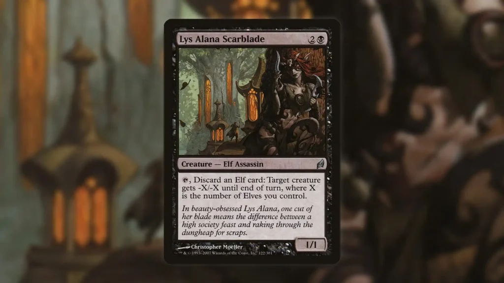 Another underrated black addition to Elf Typal decks, Lys Alana Scarblade addresses one major flaw that plagues Mono-Green Elves. That, of course, is the inability to remove problematic threats.