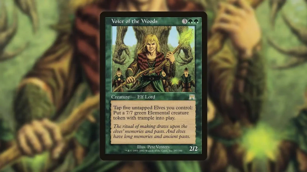 When paired with Elf token makers like Lathril, Blade of the Elves, and Elvish Promenade, Voice of the Woods threatens to flood the board with 7/7s in no time. Any mass untap effects, such as Seedborn Muse or Dionus, Elvish Archdruid, help speed up the Elemental token production process even further.