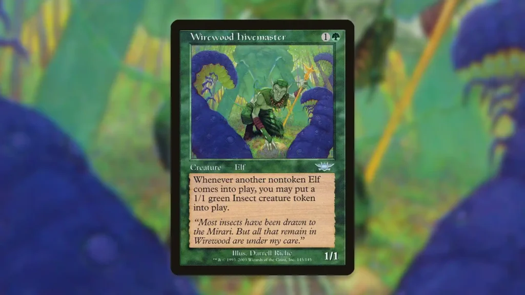 Interestingly, Voice of the Woods isn’t the only old Elf that spits out non-Elf creature tokens. Wirewood Hivemaster is super efficient, and once on the battlefield, every subsequent Elf you play will come with a 1/1 Insect buddy. Obviously, these Insects aren’t super threatening on their own, but there are plenty of ways to maximize their presence.