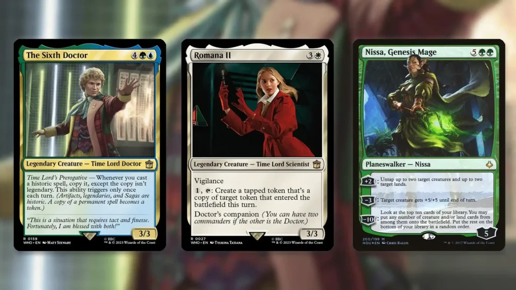 In addition to being synergistic value engines, The Sixth Doctor and Romana II also enable some sweet combos. The coolest combos available are undoubtedly those that create infinite Planeswalker tokens. This can be executed with both of your Commanders in play and Nissa, Genesis Mage in hand, for instance.