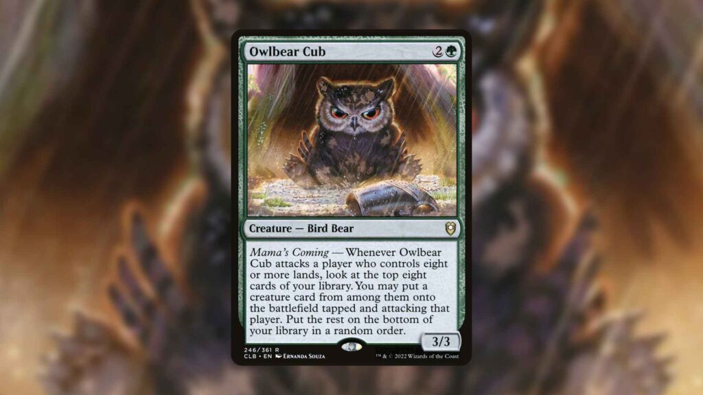 Even if an opponent isn’t using a ton of land ramp, many Commander games have players naturally play up to eight lands in an average Bracket 3 game. This means that Owlbear Cub will be good in the average game of Commander, but a ramping opponent snowballs the card into an insane advantage.