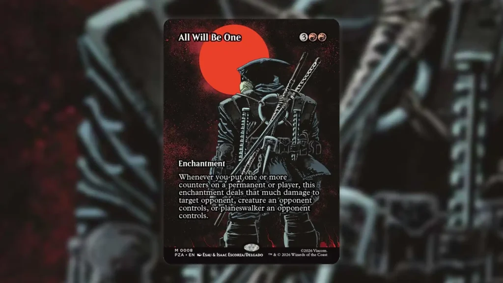 Continuing the trend of pricy cards that are worthy of reprints, All Will Be One definitely fits the mold. Counters is a very popular archetype in EDH, and this enchantment is an extremely strong payoff for consistently distributing counters across your board. Whether you focus on a +1/+1 counter theme with Shalai and Hallar or a -1/-1 counter theme with The Scorpion God, being able to keep opposing creatures and Planeswalkers in check while you develop your board is a big deal.