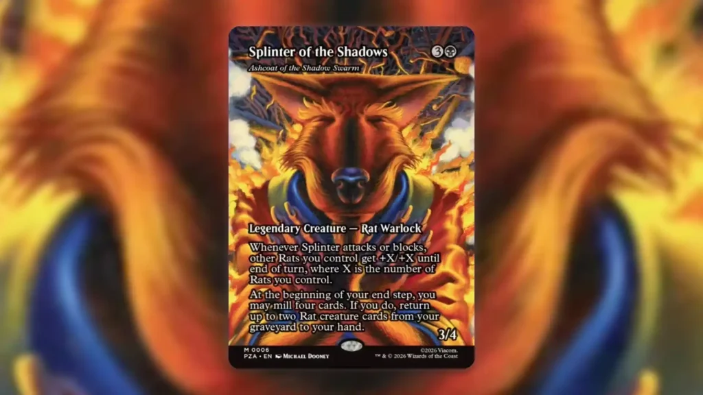 Of all the bonus sheet cards revealed thus far, none are more appealing than Ashcoat of the Shadow Swarm. Reskinned as Splinter of the Shadows, this legend is a premium addition to any Rat Commander deck. Between its ability to make your squad absolutely massive and its ability to resurrect Rats every turn cycle, Ashcoat packs a big punch.
