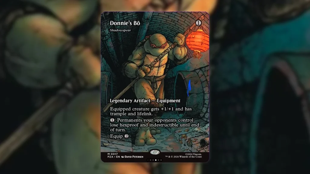 Since its first printing in Theros Beyond Death, Shadowspear has emerged as one of the best pieces of equipment in competitive Magic. This is largely due to its synergy with Urza’s Saga. Not only can the enchantment reliably tutor up Shadowspear, but this equipment turns your big Constructs into Trampling Lifelinkers. Being able to force opposing permanents to lose Hexproof and Indestructible is also a nice touch against God Commanders.