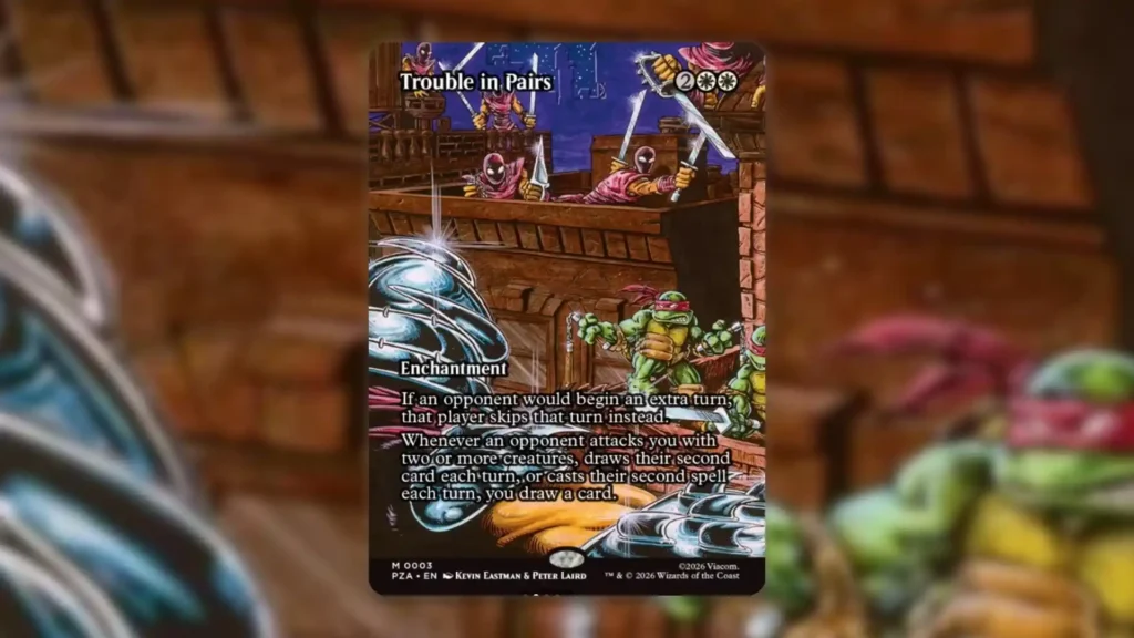 Trouble in Pairs is yet another staple earning a reprint in the TMNT bonus sheet. This enchantment is an EDH staple that nearly every white deck would be happy to play. In a multiplayer setting, this enchantment is capable of drawing you a handful of cards every single turn cycle that it sticks around. If Trouble in Pairs isn’t drawing you cards, it means your opponents aren’t doing too much either. Whether you draw tons of cards or restrict your opponents, Trouble in Pairs will always put you ahead.