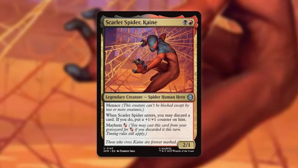 That’s why there are a bunch of cards with Madness and Mayhem in the decklist. Discarding Scarlet Spider, Kaine or Swarm of Bees to The Cookbook nets you a Food token while simultaneously allowing you to cast your threat at a discount. Other cards with Madness or Mayhem include Fiery Temper and Carnage, Crimson Chaos.