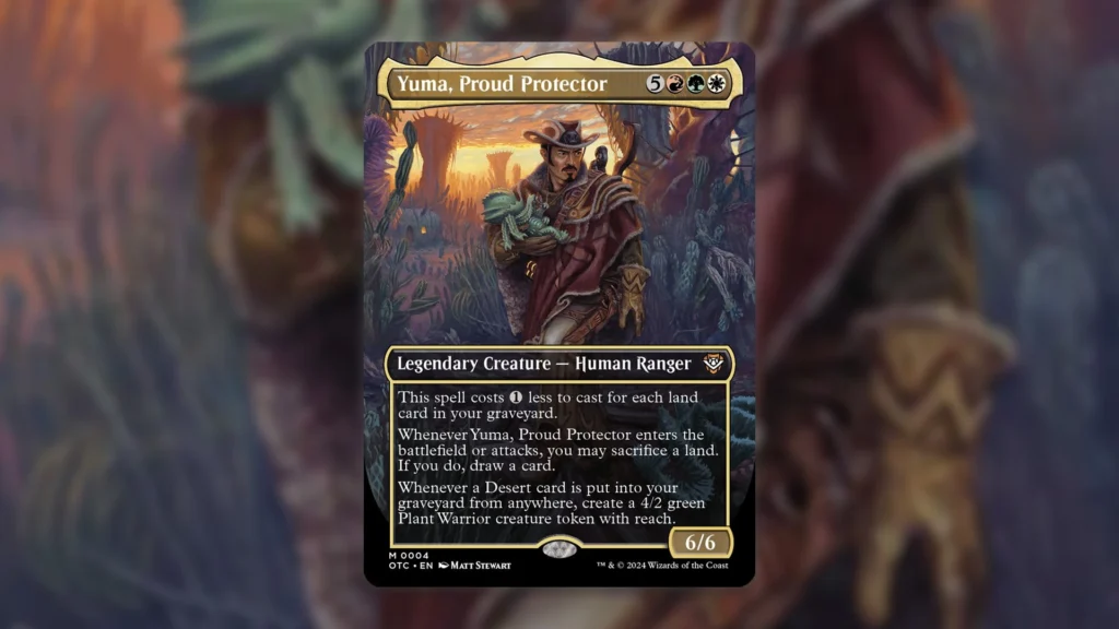 Even though Aura Fracture takes a specific shell to utilize, other decks can make use of it besides just those with Toph in the Command Zone. Yuma, Proud Protector, for instance, is a solid card to pair with Aura Fracture since it rewards you for sacrificing your Deserts on command. On the other end, Hazezon, Shaper of Sand enables you to replay any lands you sacrifice. Once you add Azusa, Lost but Seeking, or any similar effect into the mix, you have a consistent engine that threatens to mow down your opponents’ enchantments in a jiffy.
