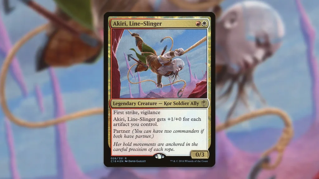 Akiri, Line Slinger fits the mold perfectly. Despite being an Ally, Akiri incentivizes you to fill your deck with tons of cheap artifacts instead of other Allies. At the same time, Akiri abuses the broken Partner mechanic, which enables you to utilize two different Commanders while simultaneously opening the door to run more colors for maximum flexibility. Akiri’s efficiency, combined with its ability to grow out of control, helped keep it on the Duel Commander banlist until earlier this year.