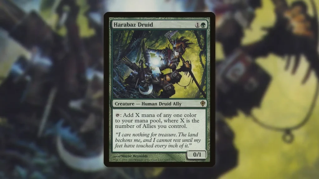As you build out your board, Harabaz Druid begins to take over. Whether you’re funneling the excess mana into General Tazri or Mirror Entity, there’s no shortage of ways to close games. The options for mana dorks that are also Allies is extremely slim, too, which only makes this card more valuable to your deck.