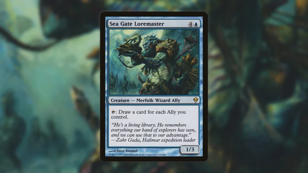 As far as cards that fit in the 99 of an Ally Commander deck, there’s no better payoff than Sea Gate Loremaster. It doesn’t take much before this card is drawing you an entire fresh hand of cards. Even before you’ve developed your board, the card advantage this card generates further fuels itself by digging for more Allies to play.