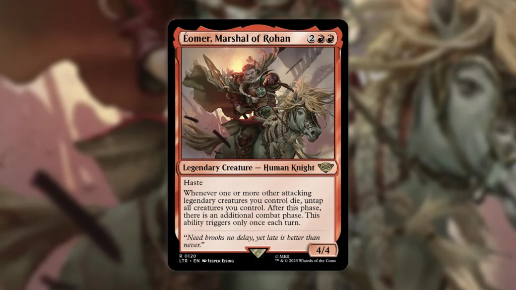 Eomer, Marshal of Rohan is especially intriguing. As long as you get to steal an opposing legend, attack with it, then sacrifice it, you’ll earn an extra combat step. If Eomer sticks around, this is a nice reward turn after turn.