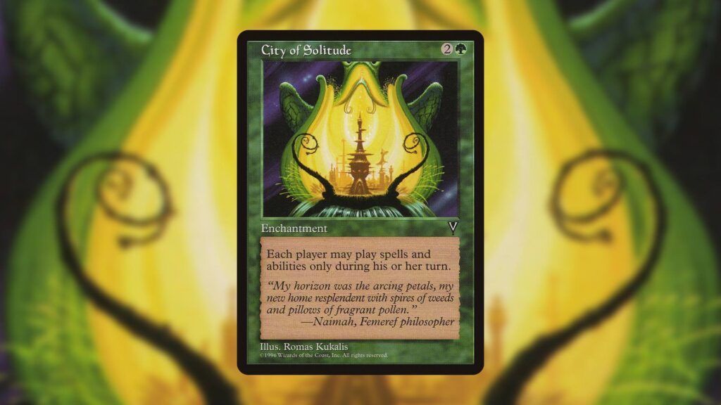 This limits City of Solitude in a few ways. Playing this at the highest levels of Commander, for instance, is extremely risky since you’re essentially granting everyone free passage to win the game. You also don’t want to be interacting with opponents very much yourself.