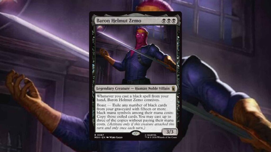 The Connive ability of Zemo, alone, is incredibly powerful, but to consistently get value out of this card, you need to set up a turn where you both deploy this and cast another black spell immediately. Otherwise, you risk this card being removed before your next untap. That said, if you untap with Zemo, you should be pulling far ahead in a focused strategy.
