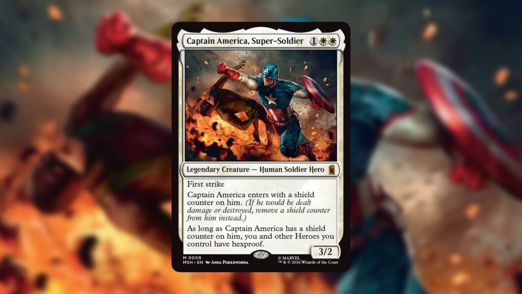 Captain America doesn’t have a flashy ability, but it is flavorful and quite powerful. The combination of a Shield Counter and giving your other Heroes Hexproof can make your board quite difficult to properly deal with. Forcing an opponent to burn a removal spell on Captain America’s Shield Counter is the dream here, but it won’t always work that way.