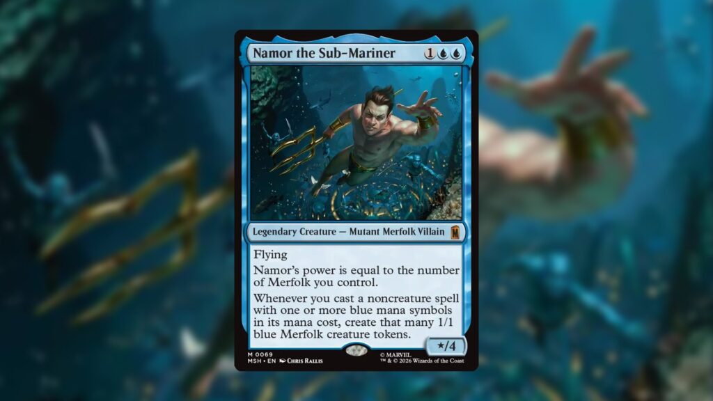 Last, but certainly not least, Namor, the Sub-Mariner looks like an interesting new Merfolk Typal tool across multiple MTG formats. Capable of seeing play in Pioneer, Modern, and Legacy alike, Merfolks want to go wide and buff their various tokens, which is something that Namor helps with in spades.