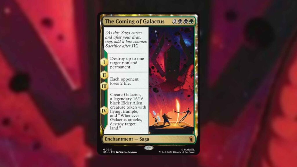 The first mode of The Coming of Galactus takes care of a lot of the inherent issues that this card would otherwise have. Five mana is expensive for a destruction effect, but the fact that this card doubles as a win condition more than makes up for it. In decks where you can accelerate the Lore counters on this Saga, The Coming of Galactus can give opponents a very small window to deal with it.