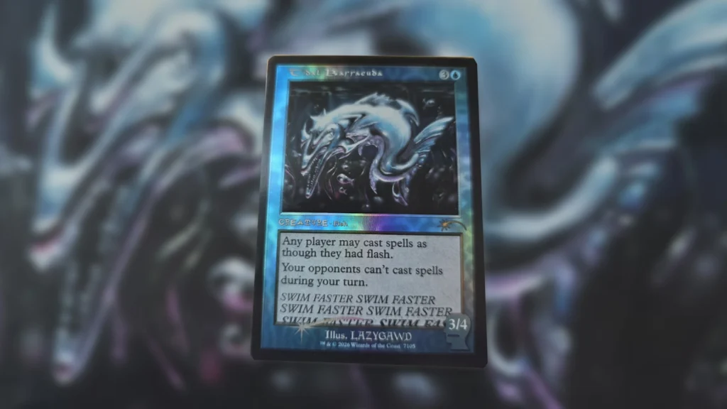 Interestingly, it seems Miren isn’t the only expensive bonus card players can open in this Secret Lair. Boasting a similar retro style printing, Tidal Barracuda is quite a strong reprint in its own right. Once again, this is the first time Tidal Barracuda is being reprinted, and the first opportunity for EDH players to pick up an alternate art copy.