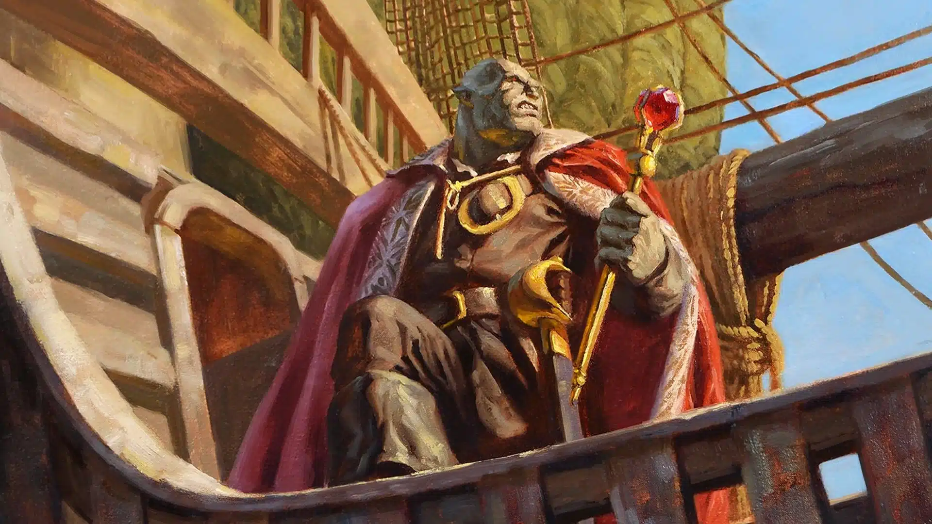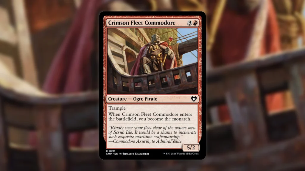 As you continue to decimate your opponent’s side of the board, your goal is to, eventually, land a copy of Crimson Fleet Commodore. The Monarchy is an absurdly strong mechanic in a one-versus-one setting, since there’s no risk of getting ganged up on by multiple players. So, as long as you can keep your opponent’s side of the board clear, the card advantage will bury your opponent over time. Commodore also presents a fast clock if left unchecked. As a Pirate, it doesn’t even die to Fiery Cannonade.