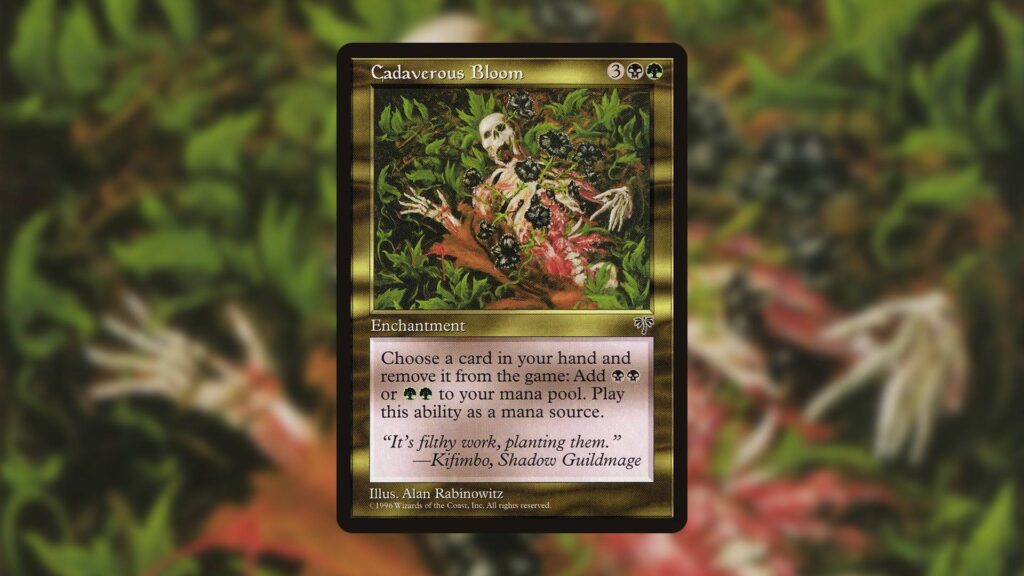A long time ago, Cadaverous Bloom, a forgotten Reserved List card, was the front face to an infamous combo deck. Despite its historical prevalence, the card has become long forgotten nowadays outside of Premodern. Considering how powerful its mana generation abilities are, this seems like a wasted opportunity for many MTG Commander players.