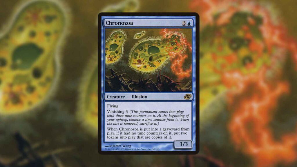 Unlike most cards that have Vanishing, Chronozoa doesn’t have a limited lifespan. Instead of the Illusion leaving play with no Time Counters, it essentially gets to replicate itself instead.