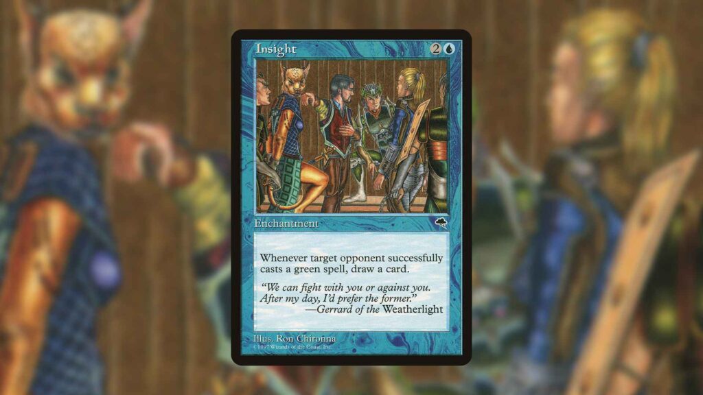 Insight is as powerful and situational as it is simple. If you have multiple opponents in green at your table, Insight will easily net you a ton of cards. Generally, if Insight draws you at least three cards over the course of a game, this enchantment has performed extremely well. This is a rather low bar to cross, so long as one of your opponents is playing green, Insight will generally pull its weight.