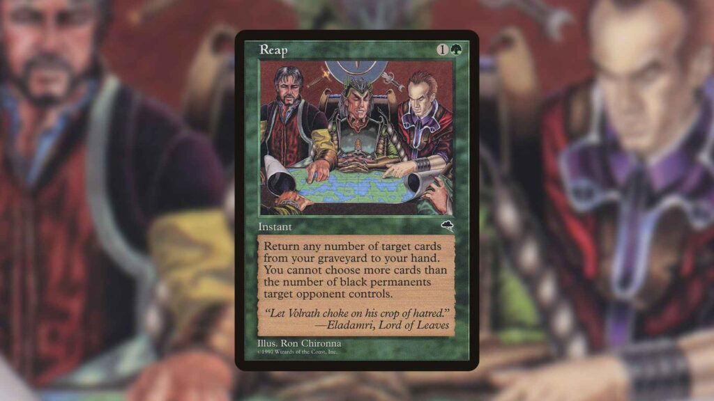 It doesn’t take much for Reap to offer an incredible effect for just two mana. There isn’t a single card in MTG that offers the player the ability to return a potential three or more cards from the graveyard to the hand for just two mana. Even if you’re returning two cards, the rate on Reap is insane.