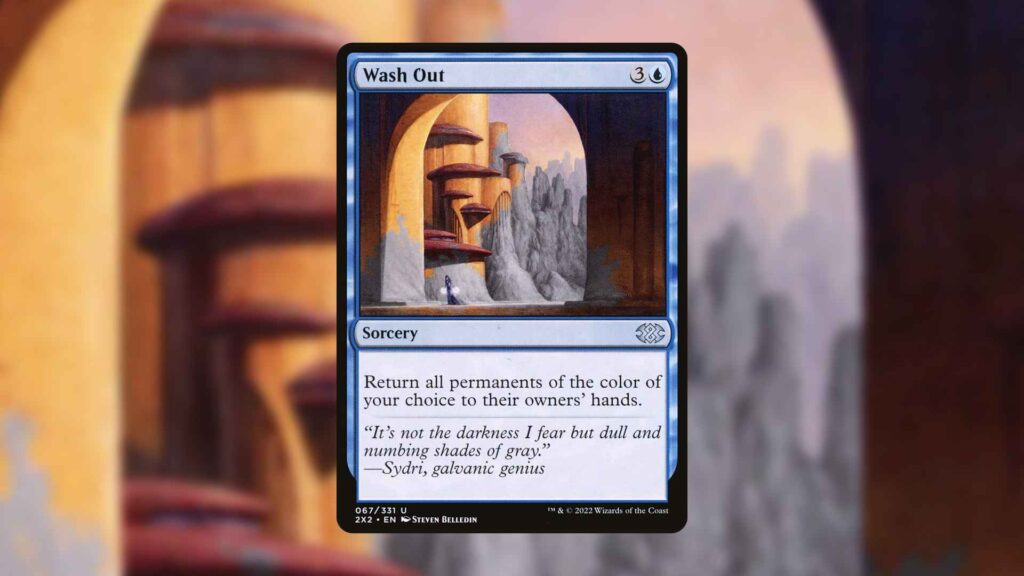 All of this means that Wash Out is, all things considered, a very flexible card for a color hoser. For many, this $0.50 sorcery can function as a budget, albeit significantly worse Cyclonic Rift. Alternatively,for non-blue decks that want a card like Wash Out, there are some other cards, like Sudden Demise, that can do a similar thing.