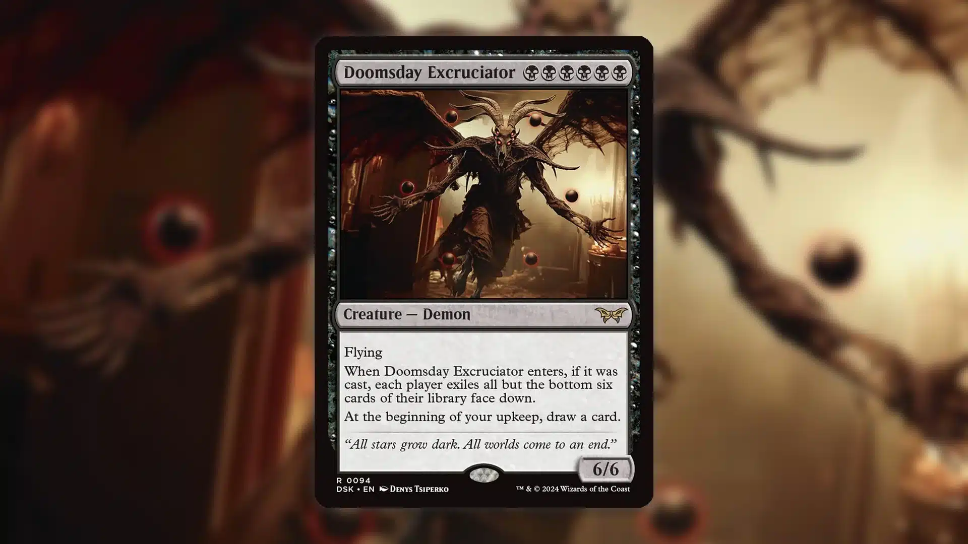 Released back in Duskmourn: House of Horror, Doomsday Excruciator is a very powerful, albeit mana-intensive, MTG card. Essentially, when cast, Doomsday Excruciator puts each player on a six-turn clock. When combined with force draw effects, like the recently spiked Insatiable Avarice, this combo can end games surprisingly quickly.