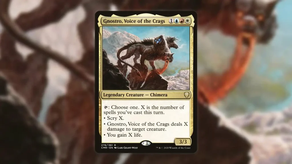 Overall, Gnostro, Voice of the Crags has more than enough utility to be a strong Commander. Its wide range of abilities make it quite a unique and fun build-around that stands out among Spellslinger Commanders. Despite this, though, the legendary Chimera remains extremely underplayed, only appearing as the Commander in 616 decks according to EDHREC.