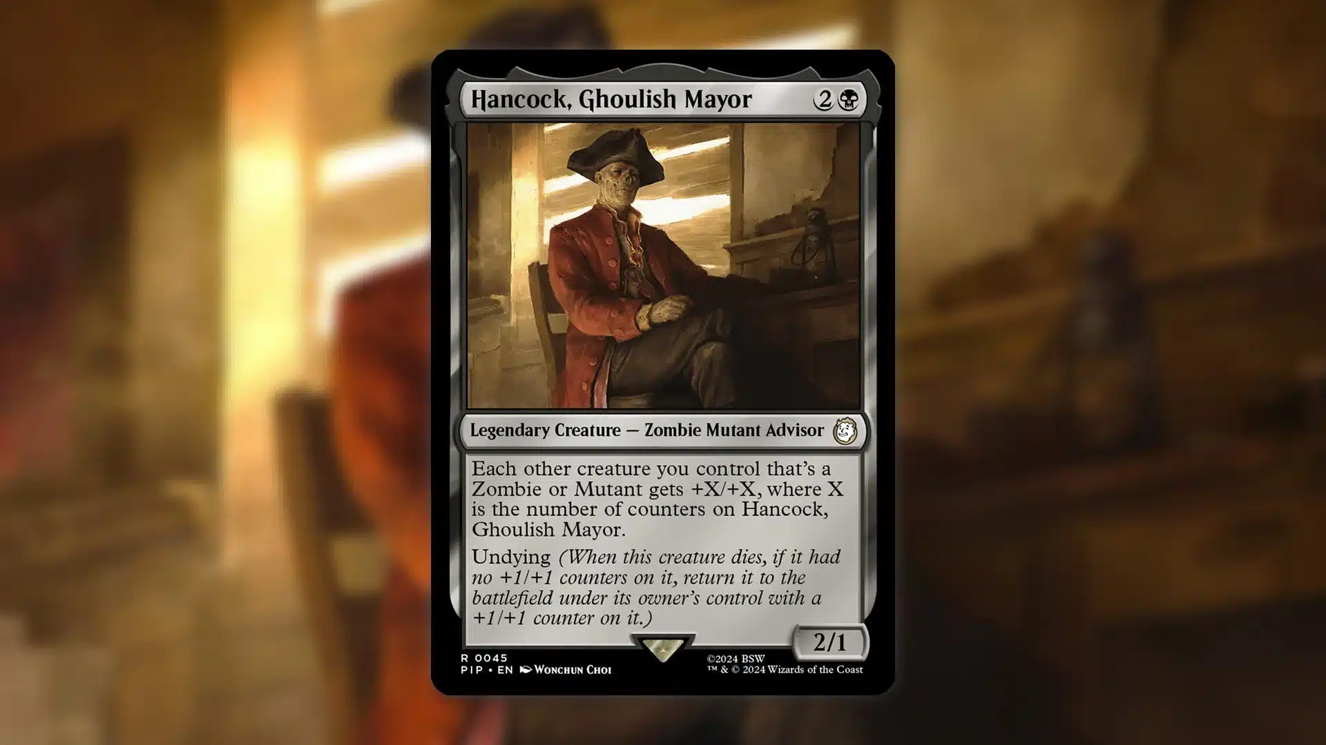 Unlike a lot of Commanders released in recent years, Hancock, Ghoulish Mayor, surprisingly, isn’t a self-contained value engine. Technically, Hancock does feed into himself slightly thanks to his Undying ability, but that’s where the internal synergy stops. Without any other support, all you’ll get from Hancock is a +1+1 buff to all your Mutants and Zombies.