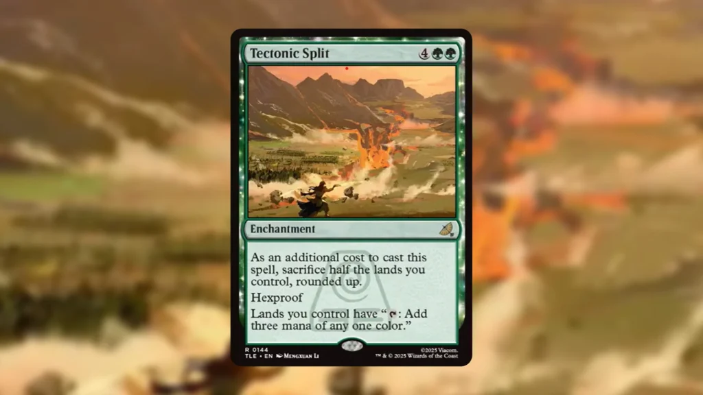 Alternatively, decks that sacrifice lands are relatively popular at the moment, making Tectonic Split’s casting cost much less of a downside. Hearthhull, the Worldseed is a rather popular Commander after Wizards of the Coast created a precon masterpiece around the Vehicle. If you manage to fully Station Hearthhull, Tectonic Split can both ramp your mana and force your opponents to take a ton of damage.