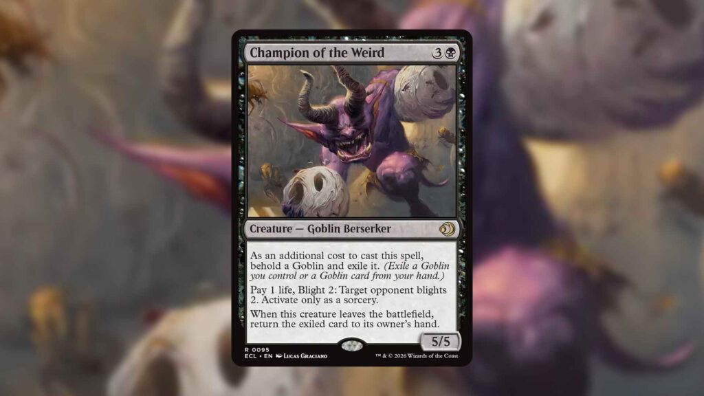Despite Champion of the Weird’s insane combo potential, the card didn’t see a ton of hype in Lorwyn Eclipsed spoiler season. The Behold cost the card demands is certainly part of the reason, since it makes the Goblin difficult to play outside decks with a typal package. You can cheat Champion of the Weird into play to ignore the Behold cost via reanimation effects, but that still requires building around the Goblin.