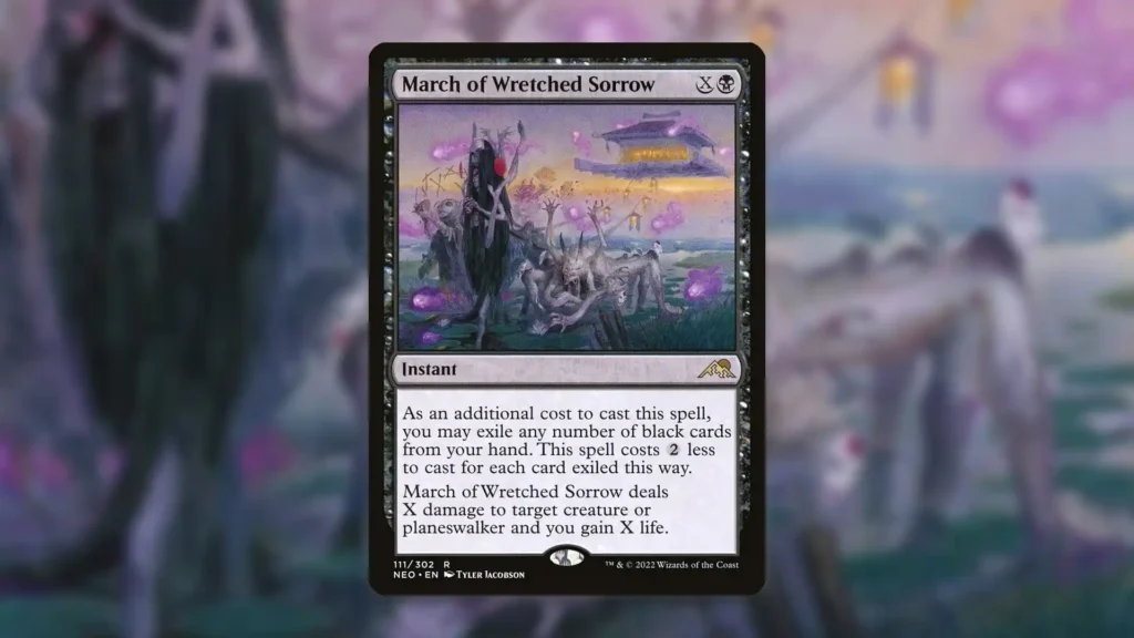 Even in the event your life total dwindles early against Mono-Red Aggro, there are a handful of cards that can build your life total back up to reenable Griselbrand. March of Wretched Sorrow is among the deck’s strongest options. Not only can you use it to kill opposing creatures early, but you can also pitch a bunch of cards to it post-Griselbrand activation to set up another activation or two. Still, even small bits of lifegain from Consuming Corruption or Collective Brutality can play a pivotal role in games.