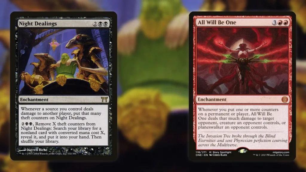 Perhaps the best part about this combo is that you really only need Night Dealings to get started. After all, once you get five counters on Night Dealings, you’re able to use it to tutor up All Will be One.