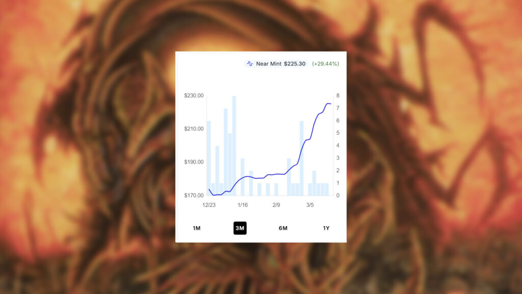 Today, the cheapest near-mint copy of the card available is $325, representing a $196 price spike over the last three months. The silver lining, if you can call it that, is that card conditions have a much larger effect on price for expensive cards like this.