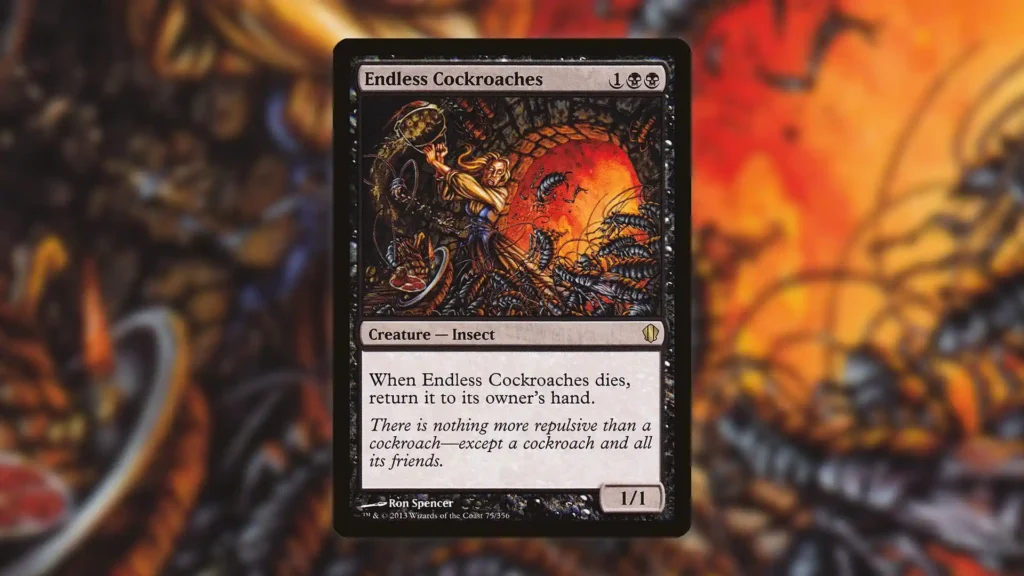 Continuing the trend of underplayed EDH typal support cards with combo potential, Endless Cockroaches is the perfect addition to a variety of decks. As a recursive Insect, this is a premium card to sacrifice over and over in a Fumulus, the Infestation shell. Similarly, continuously sacrificing Endless Cockroaches and replaying it makes it trivial to take advantage of Amzu, Swarm’s Hunger‘s triggered ability.