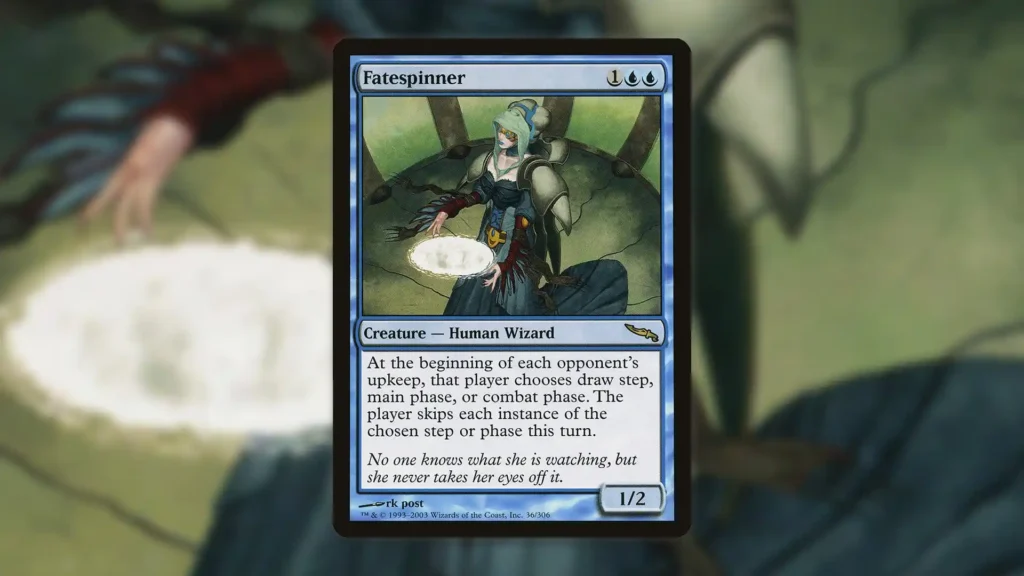 When it comes to annoying cards that put your opponents in a bind, Fatespinner is an extremely underrated tool. While your opponent is given a choice about how they want Fatespinner to affect them, all options are quite punishing. Most decks won’t want to miss their draw step, and losing out on main phases means your opponent won’t be able to play lands or cast sorcery-speed spells. Considering how many Commanders also rely on attack triggers or dealing combat damage to get value, it’s hard for Fatespinner to go wrong.