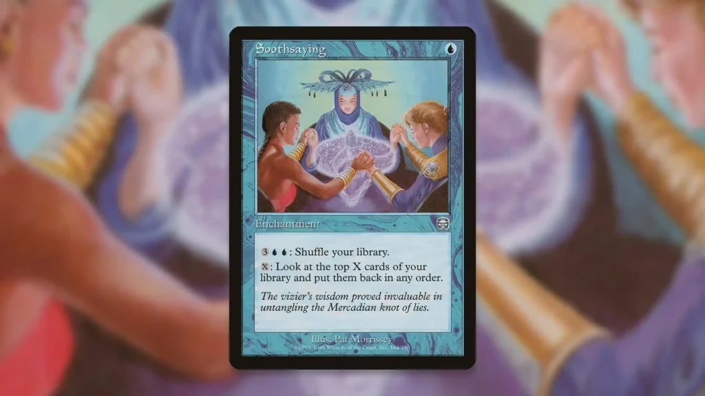 All things considered, Soothsaying isn’t the strongest card on its own. Its ability to manipulate the top of your library is nice, but maximizing the enchantment does require a lot of mana input. Nonetheless, in Commander decks that rely on having powerful cards on the top of your deck to thrive, Soothsaying can definitely pull its weight.