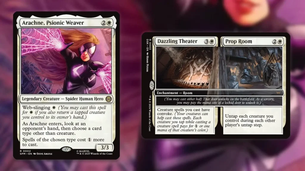 Alongside Arachne, this deck’s combo revolves around the power of Dazzling Theater. By giving your creature spells Convoke, Theater easily enables Arachne’s Web-slinging ability. All you need is another white creature in play, and you can cast Arachne without investing any mana.