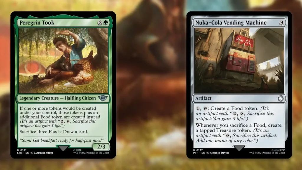 As strong as Peregrin Took and Academy Manufactor are as value engines with The Cabbage Merchant, they also play important roles as combo enablers. Peregrin Took and Nuka-Cola Vending Machine, for example, can draw your entire deck. Since Peregrin Took adds a Food to every token that gets created, Nuka-Cola Vending Machine will essentially replace all the Food that Peregrin Took sacrifices, creating an endless loop. You’ll also get infinite tapped Treasure Tokens, to boot.