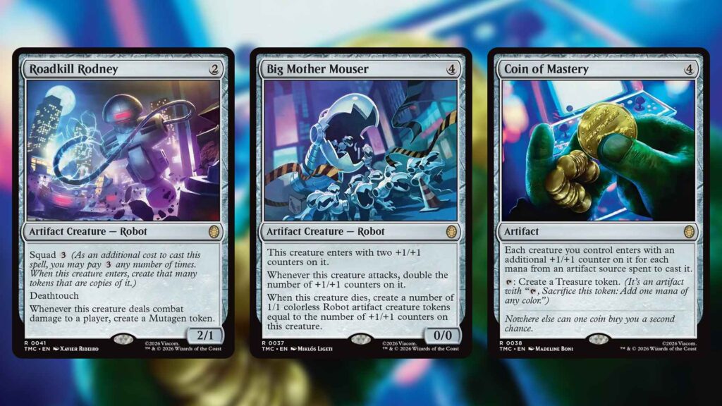 Regardless of what color your counters matters decks are, these MTG cards could make for interesting additions. That said, while Big Mother Mouser is easy to use in any +1/+1 counter deck, Roadkill Rodney is actually a bit narrow. There are certainly decks that will be interested in creating Mutagen tokens, but the Squad cost on this card is extremely expensive. Throw in a rather unimpressive floor, and this otherwise hilariously titled Robot might be somewhat forgettable.