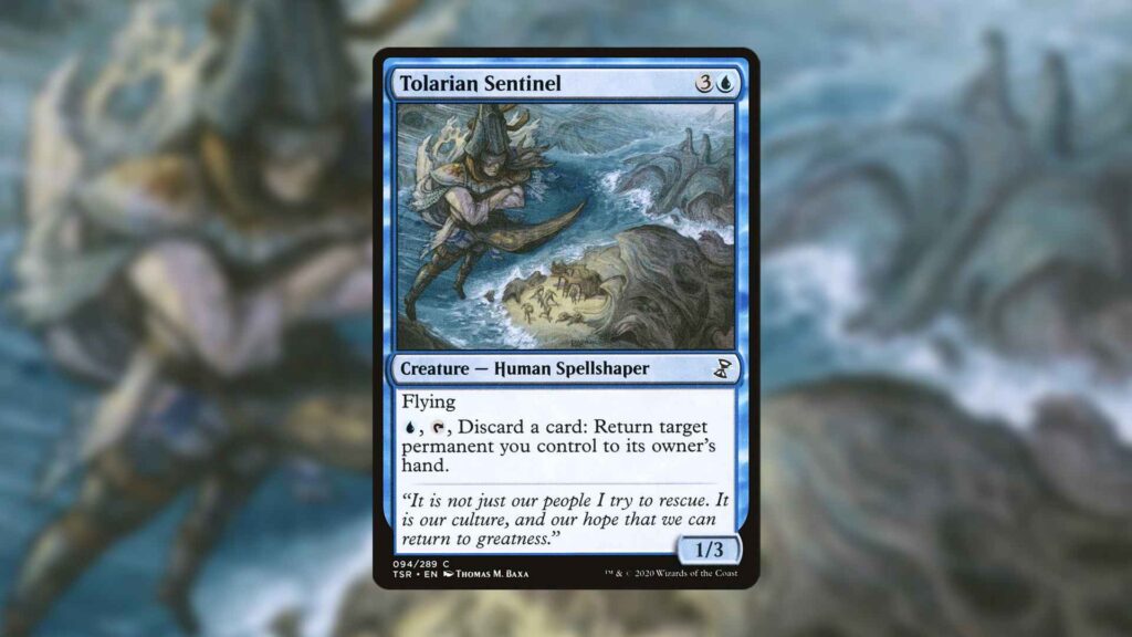 Tolarian Sentinel offers players a strange tool that can be deceptively powerful. At a baseline, the card is able to protect your most desirable permanents from removal by bouncing them back to your hand. Of course, you can also use this to bounce creatures with powerful ETB effects, like Eternal Witness.