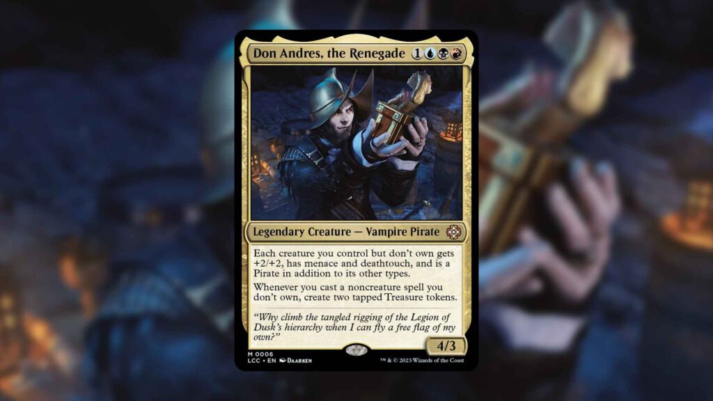 Thankfully, there is one Commander in MTG that solves both problems at once. Released as part of The Lost Caverns of Ixalan’s Ahoy Mateys precon, Don Andres, the Renegade is a nearly perfectly balanced Commander.
