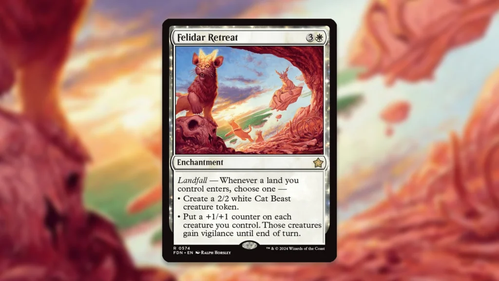 Felidar Retreat also has plenty of merit as a sideboard option, boosting your matchup against decks with lots of creature removal. If your opponent keeps a reactive hand in hopes of keeping Mightform Harmonizer in check, Retreat may bury them by itself.