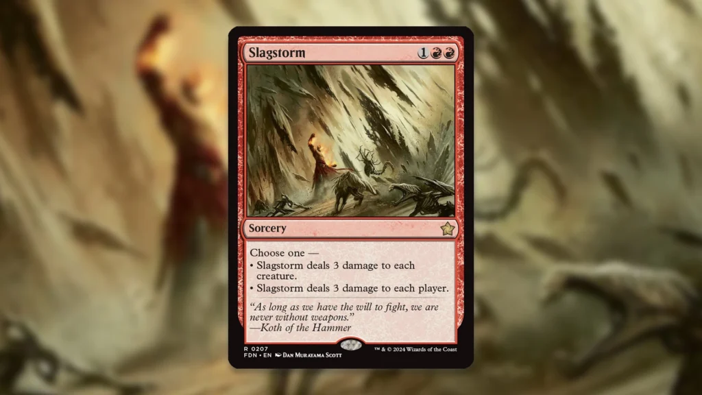 While far less flashy, Slagstorm actually showed up in a high density of Izzet sideboards this weekend. Superior three-mana mini board wipes like Brotherhood’s End are no longer in Standard, and given that Slagstorm appeared in MTG Foundations, it’s easy to forget the card is even Standard legal.