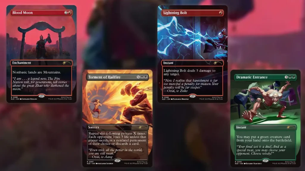 Moving to “The Ember Island Players” Secret Lair, the value here rests nearly entirely with Braid of Fire. Unlike most cards featuring the Cumulative Upkeep mechanic, Braid of Fire actually gets better as the game progresses. The enchantment sees consistent play in Ashling, Flame Dancer decks that make it easy to store the excess mana for later use. Braid of Fire should similarly become a staple in Ozai, the Phoenix King decks.