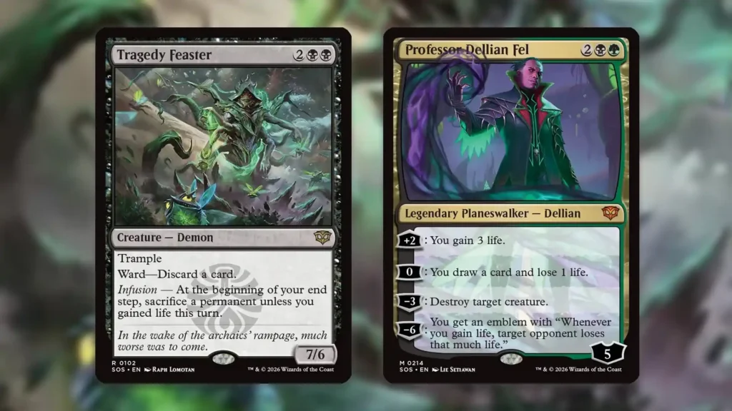 Overall, a big part of what makes Golgari Midrange so intriguing in Standard is that the new additions all help improve this deck’s position versus Izzet. Tragedy Feaster outsizes Eddymurk Crab and is too big for even Broadside Barrage to kill. Alternatively, if your opponent is holding up for Get Out, you can sidestep that with Professor Dellian Fel, swinging the game in your favor. Add on the fact that Witherbloom Charm answers Slickshot Show-Off and Stormchaser’s Talent, and you’ve got a solid game plan.