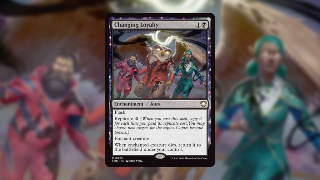 From Silverquill Influence, Changing Loyalty has ‘future staple’ written all over it. While it’s technically nothing new in MTG, its two extra abilities make it a real treat in Commander. Flash and Replicate completely revolutionize what this card is capable of, making it a great fit in a wide variety of black decks.