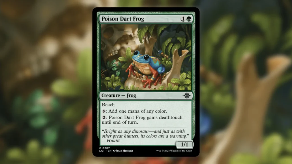 As soon as it was spoiled for The Lost Caverns of Ixalan, Poison Dart Frog instantly became a beloved MTG card. Despite this, the card has never seen much in the way of competitive play, until recently, at least. Miraculously, a deck running Poison Dart Frog just won the latest Standard Spotlight event.